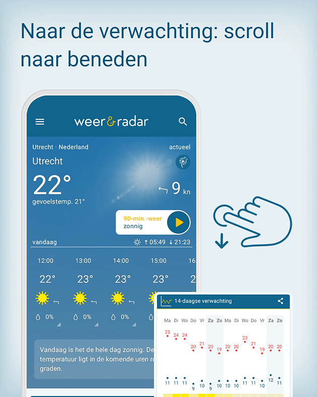 Twee afbeeldingen met links de TemperatuurRadar van Nederland met 8 tot 12 graden daarop van noord naar zuid. Rechts een ingestuurde foto van een thermometer rond de 12 graden en een bloeiende bloem door het zachte weertype.Ook volgende week toont de TemperatuurRadar (links) kwikstanden in de dubbele cijfers. Rechts, een ingestuurde foto van Jolanda Bakker die het zachte weertype van de laatste tijd weergeeft.