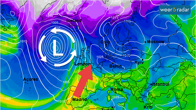Deze warmteopstoot zal daarentegen niet lang duren, aangezien een lagedrukgebied boven West-Europa regen, kans op onweer en een frisser weertype met zich meebrengt. Daarna ziet het er naar uit dat we een wisselvallige periode inslaan met geregeld buien en lagere temperaturen.