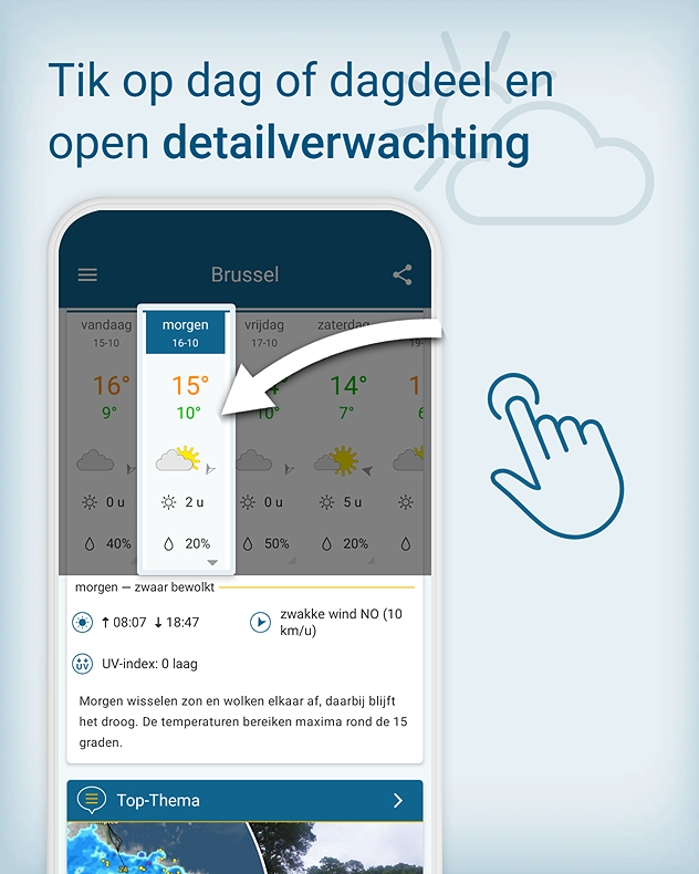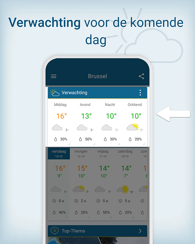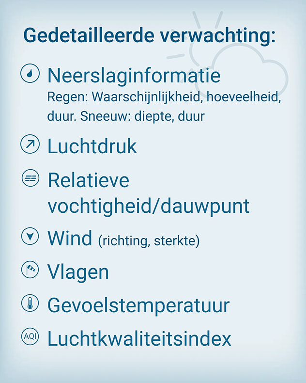 Onze nauwkeurige verwachting geeft gedetailleerde informatie over zon, wind en regen – voor jouw locatie of waar ook ter wereld.