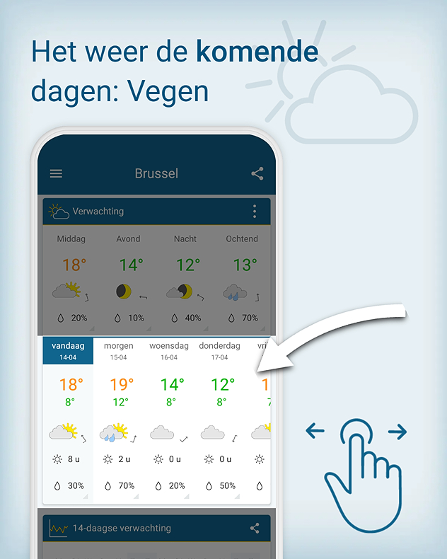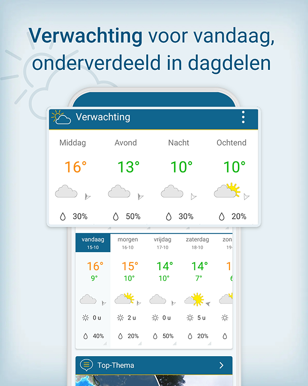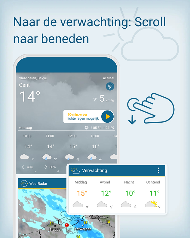 Ben je een fietstocht aan het plannen of wil je weten of je vrienden van de zon genieten op Madeira? Met de lokale weersverwachting in de Weer & Radar app kun je met één tik het weer overal ter wereld bekijken.