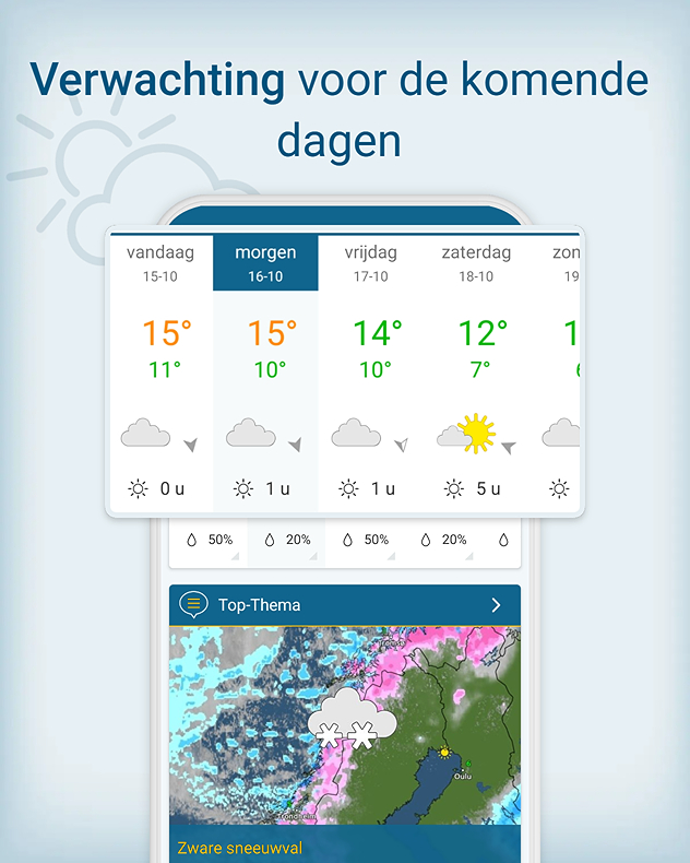 Onze fotogalerij laat je zien hoe je de verwachting voor vandaag en de komende dagen kunt bekijken: