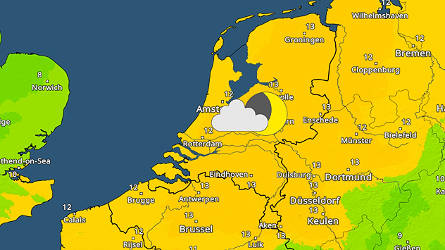 Een temperatuurkaart met blauwe kleuren in Oost-Europa die de koude-uitbraak weergeven.