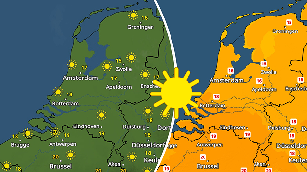 De WeerRadar toonde tijdens de piek aan het begin van de nacht vooral opklaringen boven Nederland.