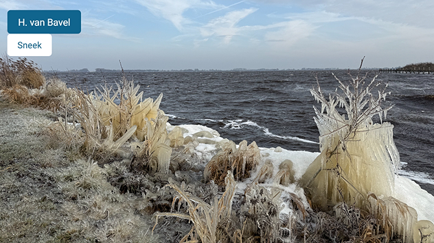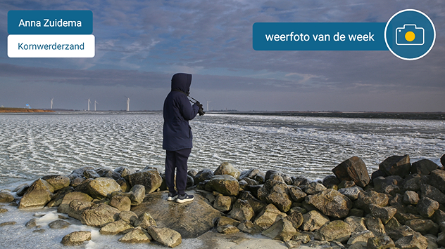 De weerfoto van de week is van Anna Zuidema. Het mooie plaatje laat het ijs op het IJsselmeer ter hoogte van Kornwerderzand (Afsluitdijk) zien.