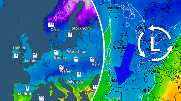 Koude lucht stroomt uit over Europa