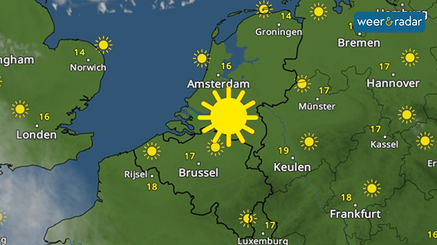 De WeerRadar toont veel zon en oplopende temperaturen in de komende dagen.