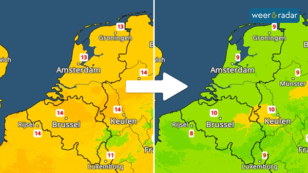 In de afgelopen dagen was het voor december erg mild, maar vanaf donderdag gaan de scherpe randjes van het buitengewoon zachte weer eraf. De maxima komen op waardes rond de 10 graden te liggen, wat overigens nog steeds wel zacht voor de tijd van het jaar is.