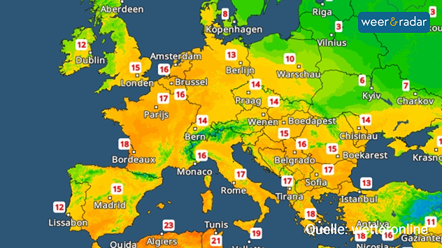 In West- en Zuidwest-Europa brengen lagedrukgebieden daarentegen tijdelijk meer bewolking en wat regen. De temperaturen liggen daar echter ook op een aangenaam niveau, met vaak 15 tot 20 graden.