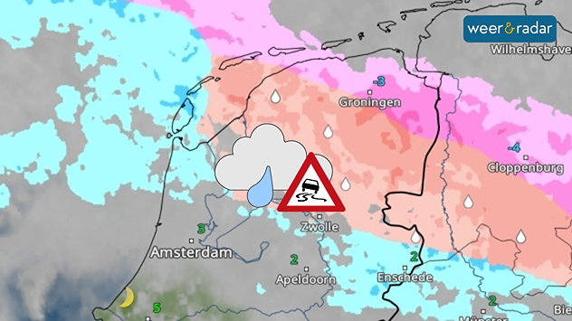 Vooral in Noord-Holland, Flevoland, Overijssel en het noorden van Gelderland kan het in de namiddag lokaal al glad worden door ijzel. Rond de avondspits is daar extra voorzichtigheid op de weg geboden.