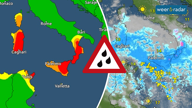 Een sterk lagedrukgebied zorgt voor noodweer in het centrale Middellandse Zeegebied. Tot woensdag zullen er vooral in Sardinië, Sicilië en Calabrië herhaaldelijk hevige regen- en onweersbuien vallen.