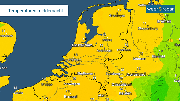 Als je vanavond naar buiten gaat, zul je merken dat het nauwelijks afkoelt. In een groot deel van het land blijft de temperatuur rond middernacht op 12 à 13 graden, wat bijzonder zacht is voor de tijd van het jaar.