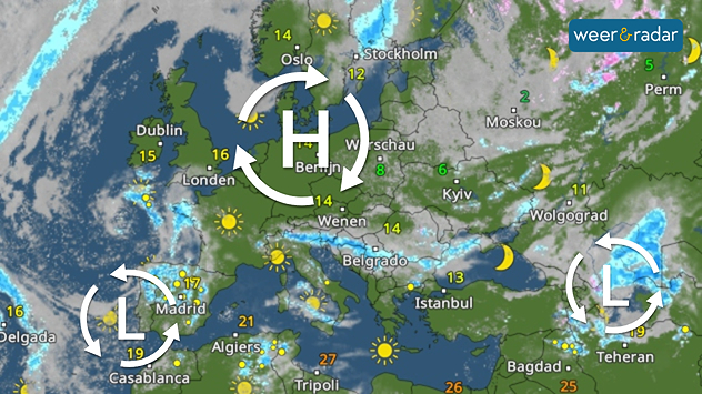 In Midden-Europa daarentegen heerst er al enkele dagen een krachtig hogedrukgebied.