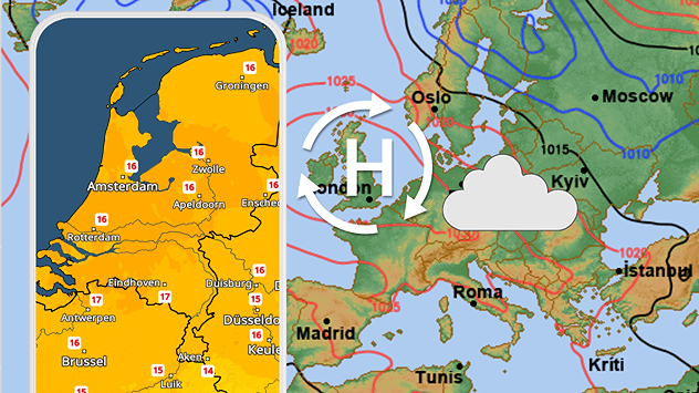 De windkaart toont dat ex-orkaan Humberto tegen het einde van de week voor zware windstoten kan gaan zorgen.