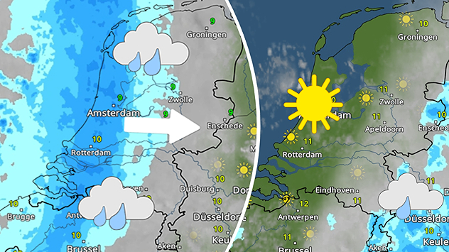 Eerst regengebied, dan felle opklaringen