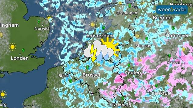 De buien ontstaan boven de Noordzee door instroom van polaire lucht op hoogte. Het grote temperatuurverschil met het relatief warme oppervlak zorgt voor sterke verticale bewegingen, die de buien voeden. Op de WeerRadar zijn ze goed te volgen.
