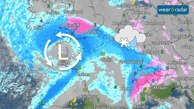 WeerRadar: Vanaf donderdag trekt een lagedrukgebied vanuit de Atlantische Oceaan naar West- en Midden-Europa.