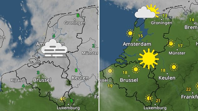 Vandaag wisselen zon en wolken elkaar in de ochtend af. In de loop van de middag breekt de zon door. De temperatuur ligt in de komende uren rond de 21 graden.