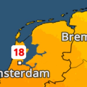 Vandaag vallen er in de avond enkele regen- en onweersbuien. In de nacht valt nog een enkele bui. Er staat een vlagerige wind. De temperatuur bedraagt momenteel 17 graden en het koelt in de nacht af tot 7 graden.