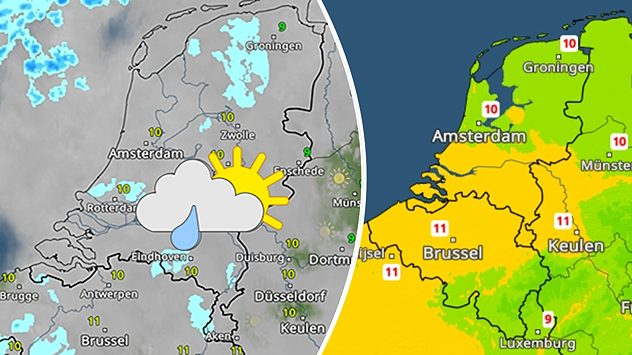 Vandaag is het zwaar bewolkt. Af en toe valt er lichte regen. De temperatuur bedraagt momenteel 8 graden en stijgt in de loop van de dag nauwelijks.