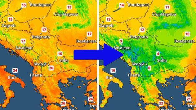Vandaag valt er in de avond en de nacht regen. De temperatuur ligt in de komende uren rond de 7 graden.