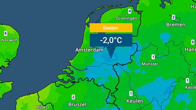 Vandaag is het in de middag half bewolkt. In de avond raakt het zwaar bewolkt, daarbij is er af en toe wat regen mogelijk. De temperatuur bedraagt momenteel 5 graden en loopt in de komende uren nog iets op.