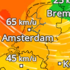 Vandaag is het overwegend bewolkt, daarbij staat een vlagerige wind. De temperatuur ligt in de komende uren rond de 5 graden.